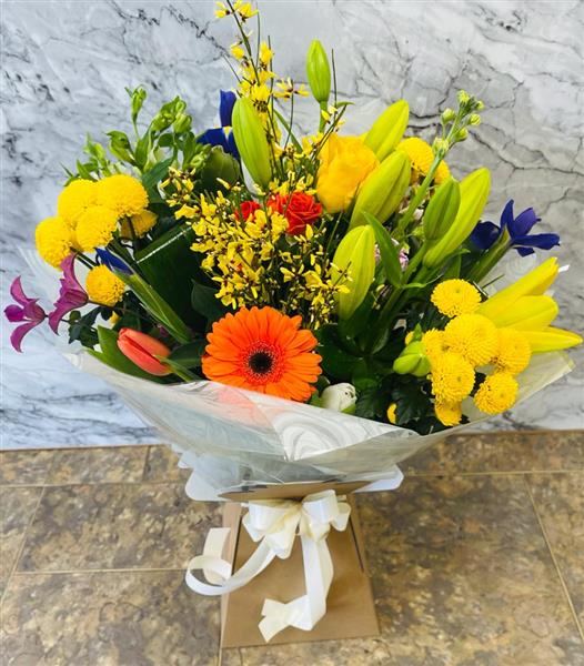 Please note that due to the seasonal availability of flowers it may be necessary to vary individual stems from those shown. Our skilled florists may substitute flowers for one similar in style, quality and value. Where our designs include a sundry item like a vase or basket it may not always be possible to include the exact item as displayed. If such an occasion arises we will make every effort to replace the item with a suitable alternative.